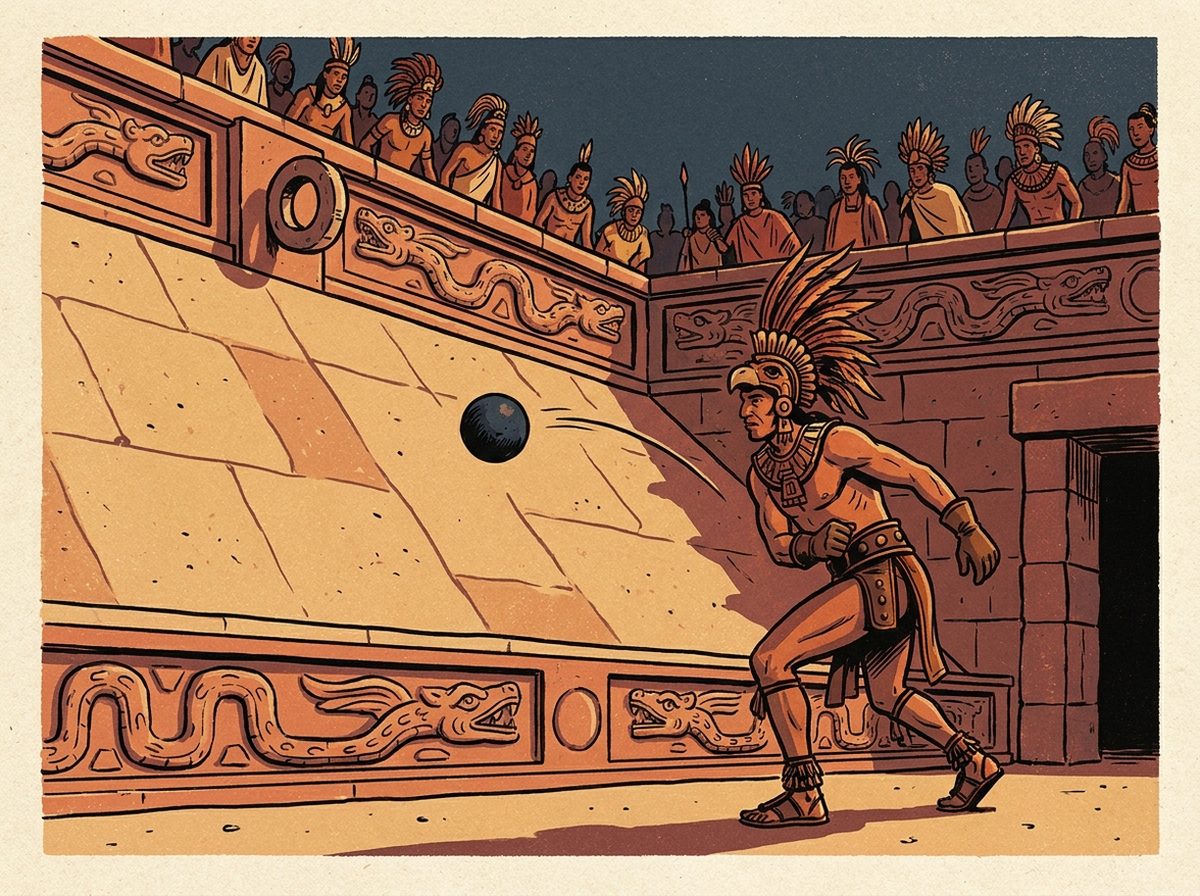 En el relato maya fundacional Popol Vuh, los héroes gemelos Hunahpú e Ixbalanqué derrotan a los señores de Xibalbá —el inframundo— precisamente en una partida de pelota. El juego era teología encarnada: cada partido replicaba la cosmología.